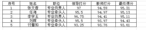 beat365官方网站2025年专业负责人、专业牵头人考核分数统计工作已经完成,根据《beat365官方网站2025年专业负责人、专业牵头人考核工作实施方案》,按照全体教师打分平均分占70%,考核评价工作领导小组打分平均分占30%计算最终分数,具体分数如下。现予以公示,公示期为2025年9月18日-2025年9月21日,公示期间如有问题可到办公室查看。