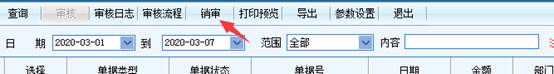 审核通过后会转到下一步流程,在下一步还未审核之前,可以通过“销审”撤回已经审核过的单据。打开本人已审标签,选择需销审的单据,点击菜单销审。