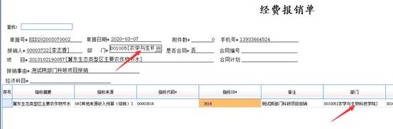 部门:同经费报销单,科研经费选择部门必须是科研项目所在部门