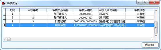 点击送审后,可以通过菜单中的审核流程,查看单据审核审批信息及审核状态。